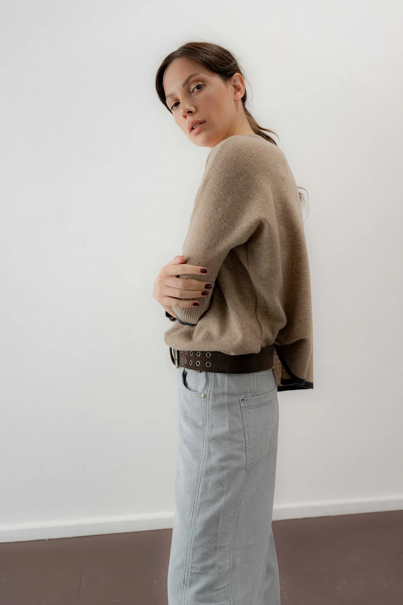 Cinturón de gamuza con ojalillos.