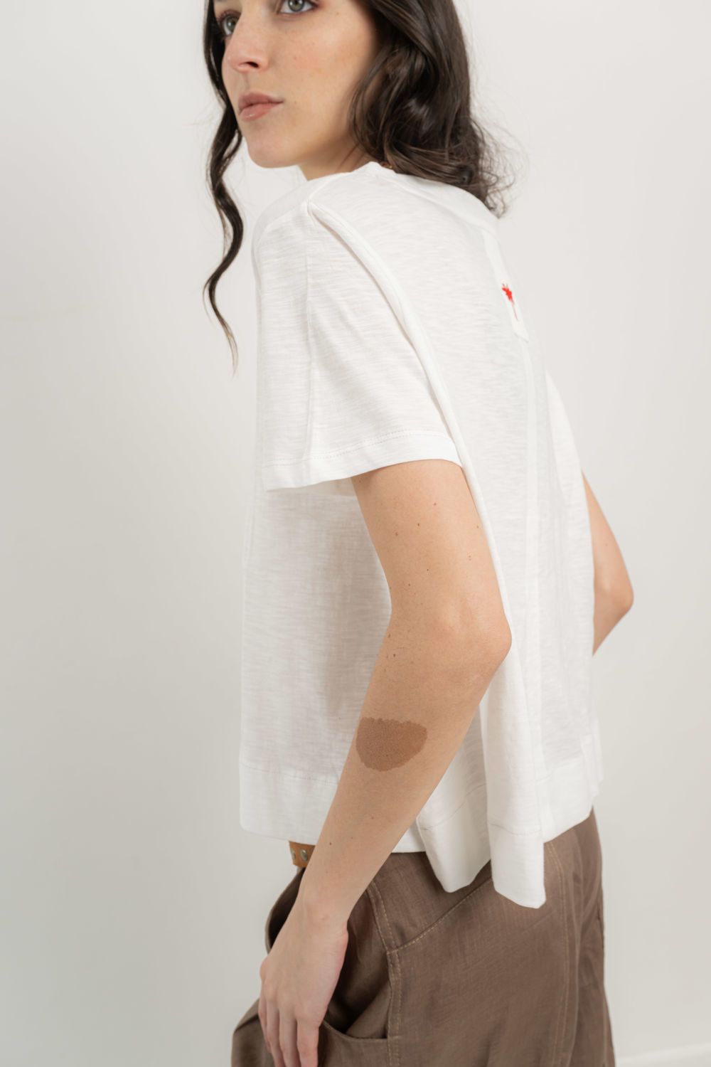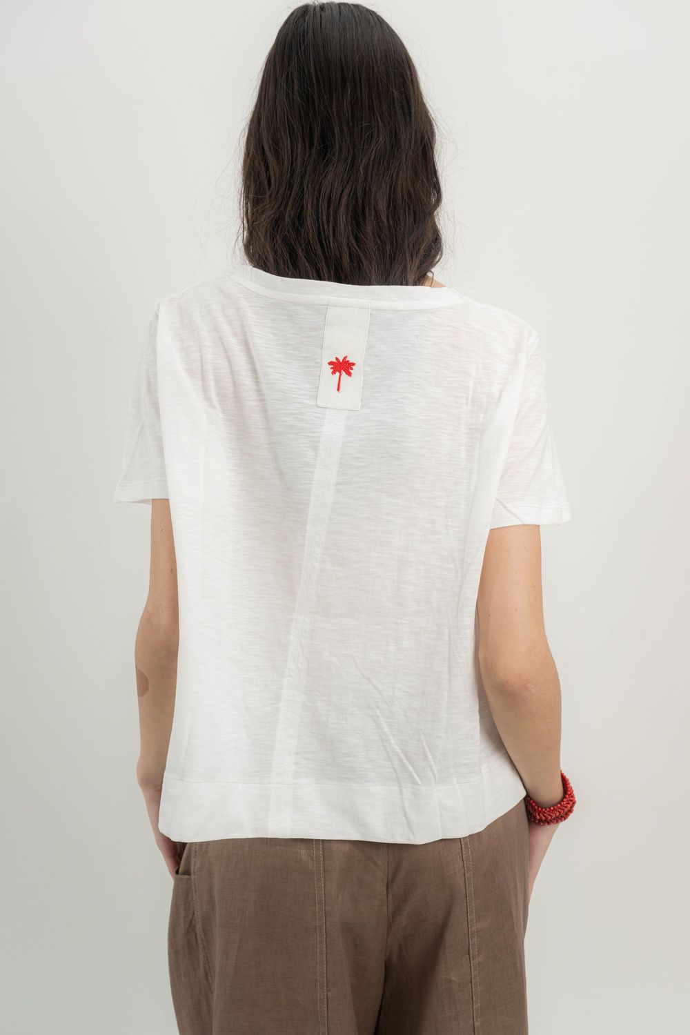 En la espalda lleva una cinta aplicada al tono con un bordado de palmera original de la marca