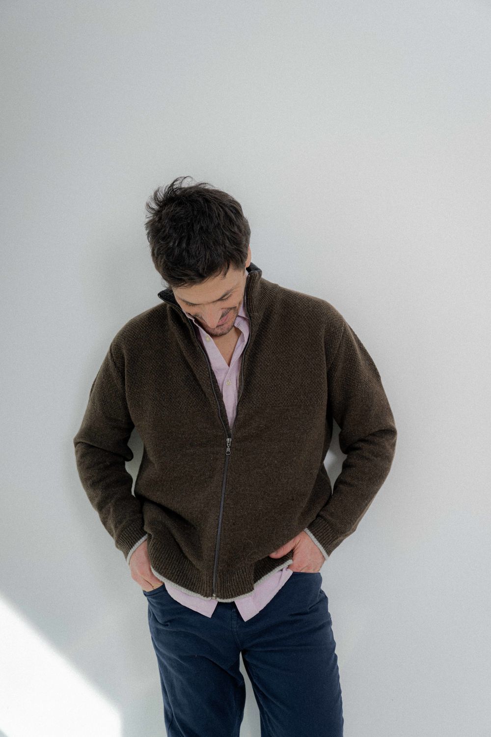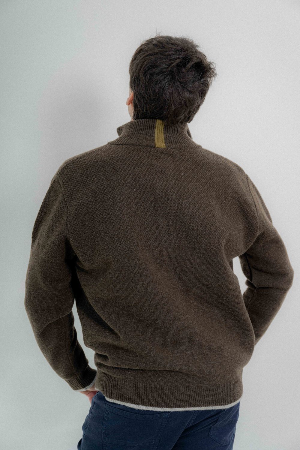 Camperita tejida en lambswool con un fit holgado, el cierre permite definir si usarlo tipo polera, semi abierto o abierto.